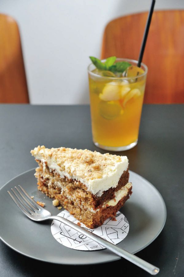 キャロットケーキ(€4.50)はグルテンフリー。ふわりとした食感で甘さ控えめです。
