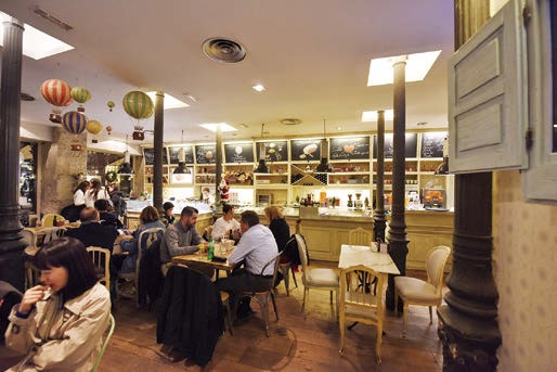 パリのル・コルドン・ブルーで修業したホセ・アルベルト・トラバンコ氏が腕を振るうベーカリー&スイーツ店「サンタ・エウラリア」。12世紀の市壁の遺構を利用した広い店内は、雰囲気があります。