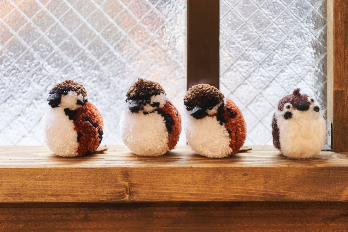 ねんどやフェルトで作った人形から水彩画まで、多種多様なスズメモチーフの作品があるので、そのかわいさにトキメキながら時間を過ごすのもおすすめです。