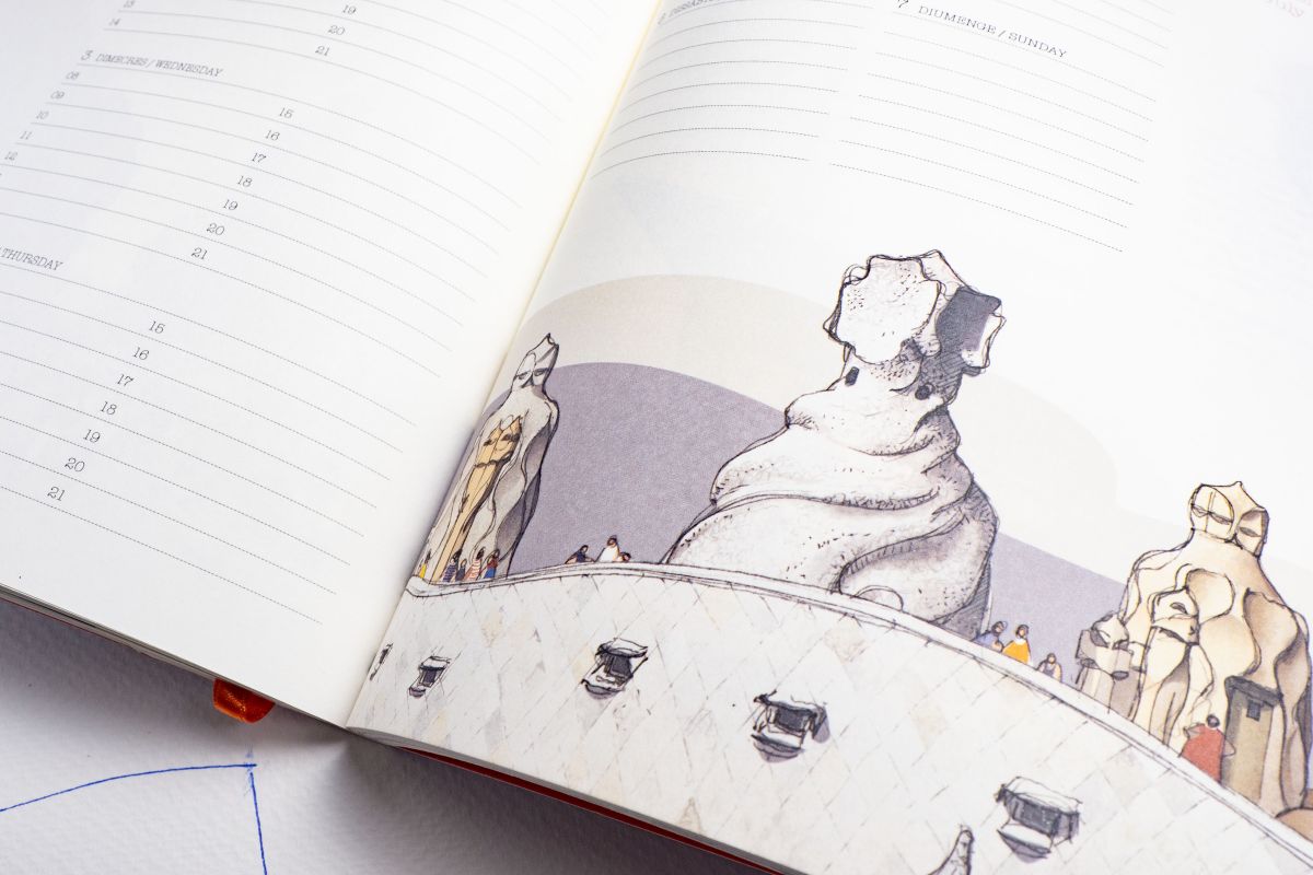 各ページにバルセロナの建物や景観が描かれているダイアリー(€22.90)。毎日使うものほど、デザインにはこだわりたいですね。