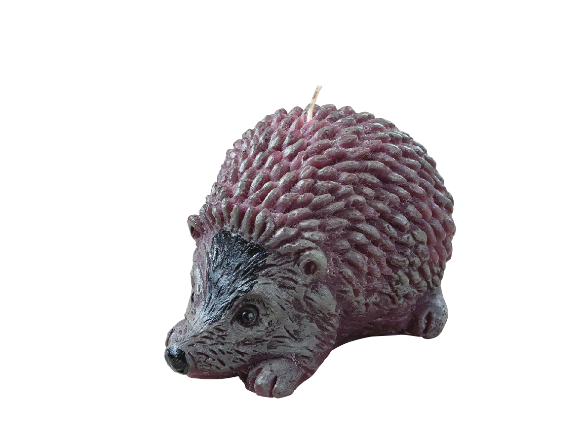 ハリネズミの姿がインパクト大のキャンドル(写真の小サイズは€6、大サイズは€10)。つぶらな瞳が印象的です。