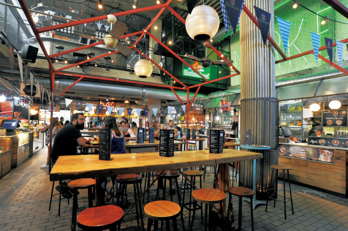 3階建ての建物に、魚介料理、串焼き料理、ワインなど17の専門店が集まっている「サン・イルデフォンソ市場」。2階に飲食スペースがあり、それぞれのお店で買った料理を味わえます。