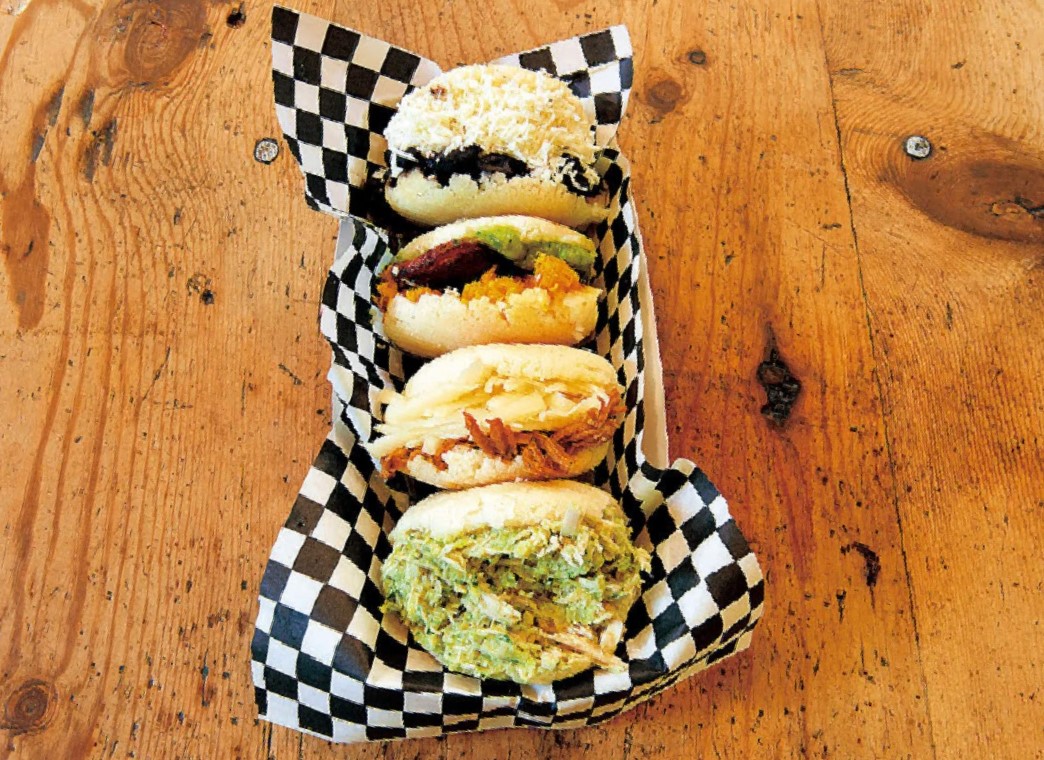 トウモロコシ粉を使ったベネズエラのパン、アレパを使ったサンドイッチのお店「ラ・アレパ」で販売しているこちらのサンド。ベネズエラのチーズや鶏肉・魚のグリルなどをサンドしています。食べ歩きにぴったりのミニサイズ4個セットで€10。