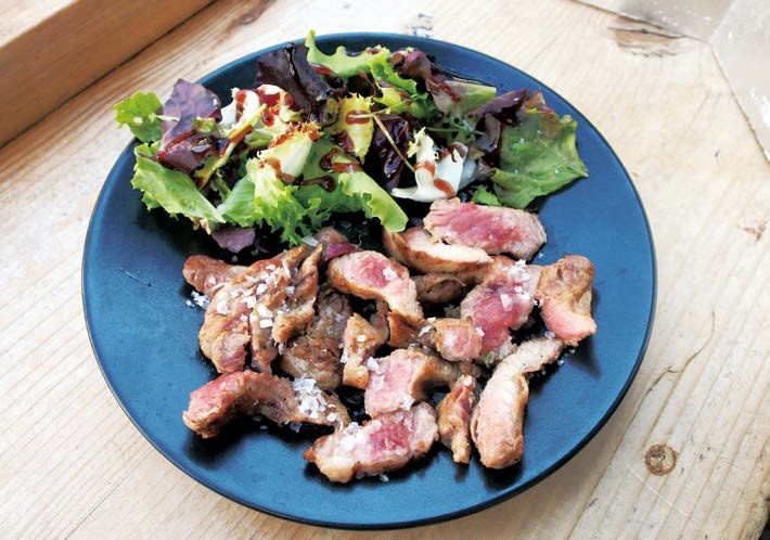 切りたてが味わえるイベリコ豚の専門店「ラ・ブティック・デル・イベリコ」のおすすめは、イベリコ豚の骨なしスペアリブ、プルマ・イベリカ(€10~15)。塩をまぶして食べます。サラマンカ産のチーズも扱っています。