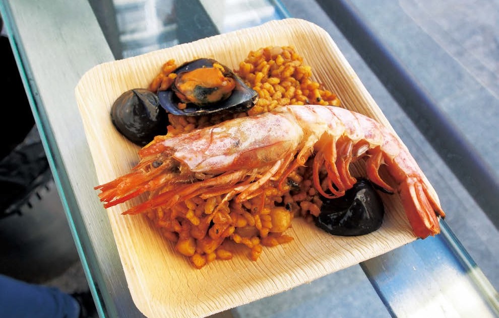 「パエーリャ・パワー」という、パエーリャの専門店もあります。エビやムール貝、イカが入った海鮮パエーリャ「アロス・デ マリスコス」は、サイズによって値段が異なり、€12から。