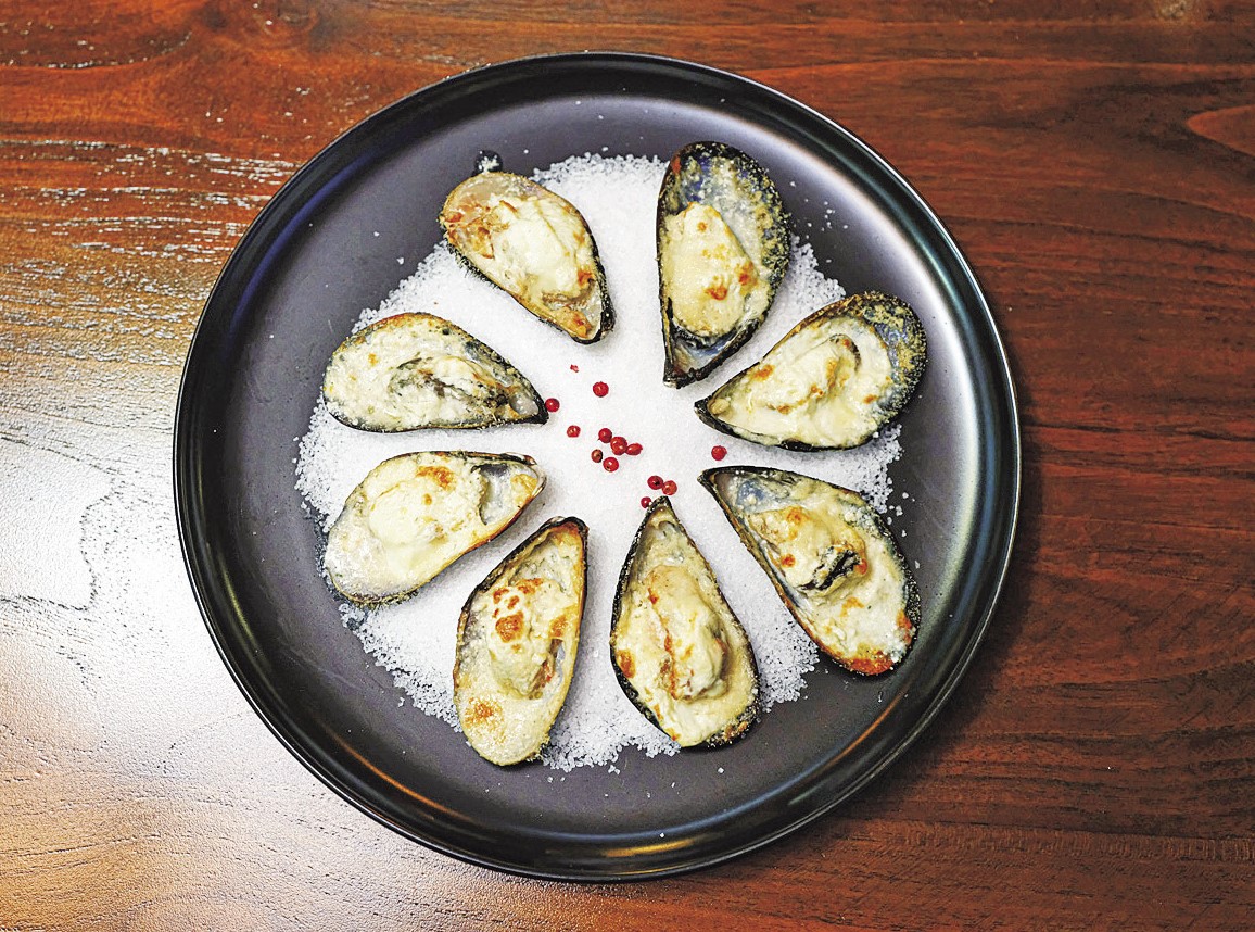 ムール貝のグラタン(620P)もおすすめです。こんがりと焼き上げたムール貝が絶品!