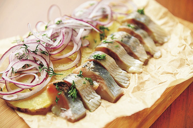 ロシアでは前菜やお酒の肴の定番である、セリョトカ(230P)も人気メニュー。ニシンの塩漬けのことです。