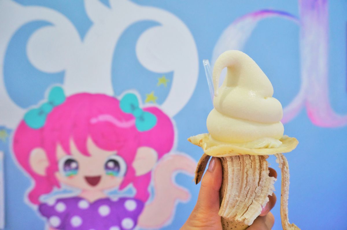 ハワイでも流行ったバナナとソフトクリームが組み合わさったフォトジェニックなスイーツ「バナナソフトクリーム」600円(税込)が原宿でも食べられるんです!