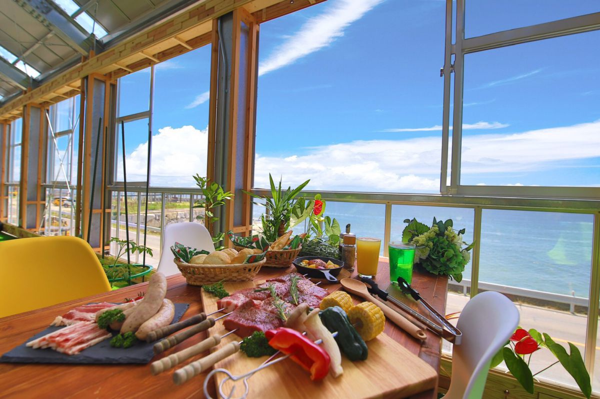 バーベキューを満喫できるアウトドア施設。屋外BBQエリアは真っ白な大型テントの下で、まさにグランピング!な、炭火バーベキューが楽しめる。大人6人までゆったり過ごせる広々した完全プライベート空間で、くつろぎカーペットスペースがるほか、BBQ用の道具(グリル、炭、網、トング、紙皿と箸(各人数分)もすべてセットになっている。食材、飲み物の持ち込みも可能。また雨の日も安心の屋内BBQエリアは、広大な海を一望できる全面ガラス張り、冷暖房完備の室内で、手ぶらBBQが楽しめる。選べるコースはmeetコース、seafoodコース、special seafoodコースの3種類。いずれもソフトドリンクバー付き。WEBER社のグリルを使用でき、スチーム&グリルが楽しめると人気。まるでリゾートのような「Gramping& resort wood designpark noma」もある。