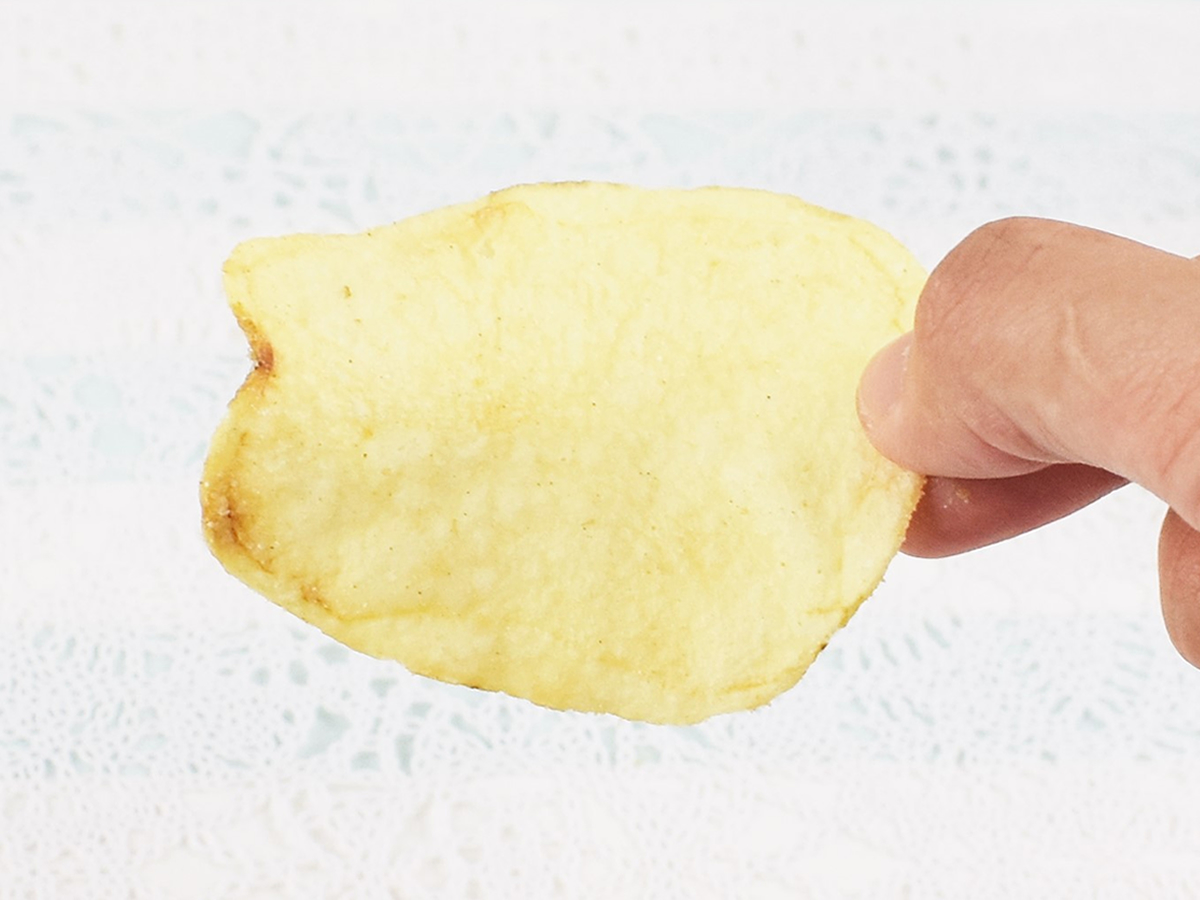 さっそく袋を開けたところ、まず濃厚な海老の香りがフワリ…。海老の他にも魚醤の粉末や“たらこパウダー”が入っているので、魚介類の芳醇な香りを感じました。見た目はいたって普通のポテトチップスなのに、海老やにんにくの香りがちゃんと再現されていてビックリ。ポテチのクオリティーの高さには思わず脱帽です。