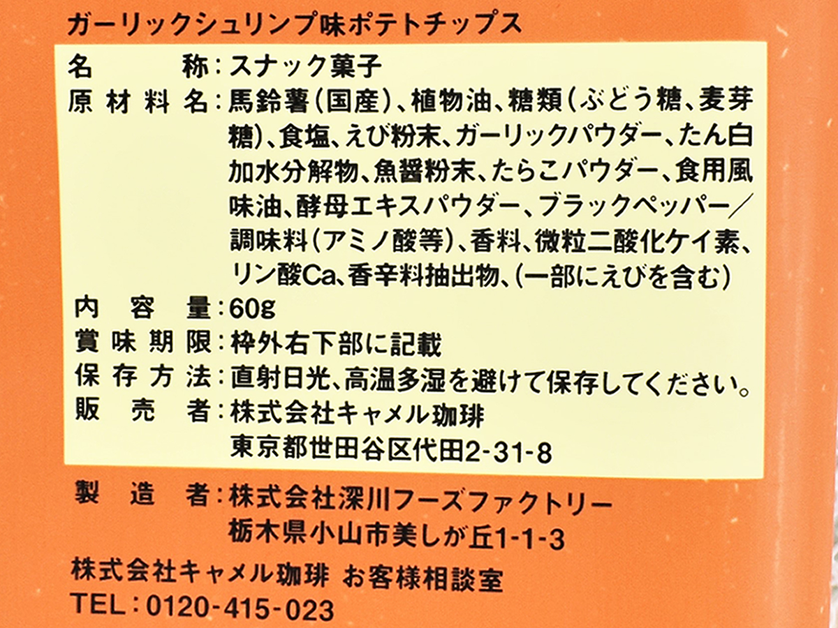 「ガーリックシュリンプ味ポテトチップス 60g」(カルディ)
