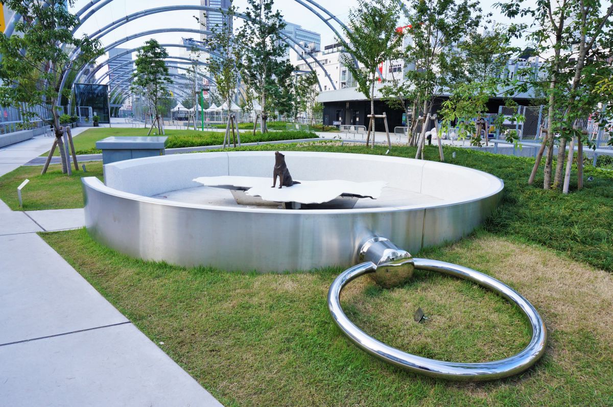 「渋谷区立宮下公園」で見逃せないのが、公園中央にあるパブリックアート「渋谷の方位磁針|ハチの宇宙」です。