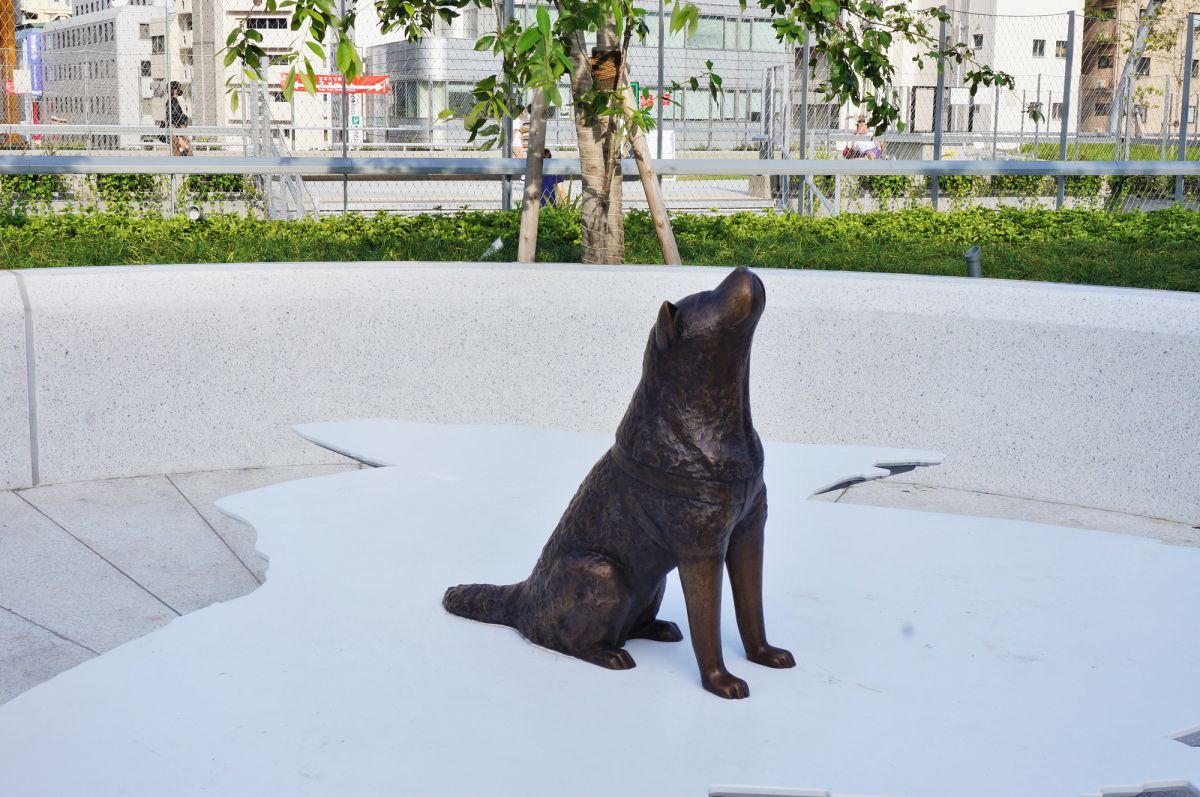 ハチ公は渋谷駅前のハチ公と同じく東向きのデザインですが、高さ85cmの駅前ハチ公に比べると、少し小さい高さ60cm。