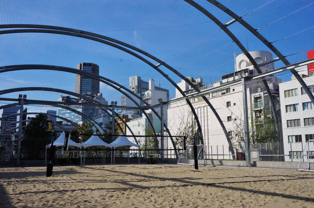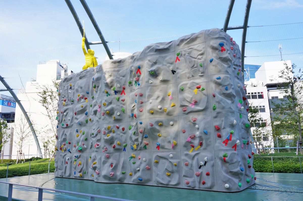 駅方面の南側にはスケートボードやインラインスケートなどができる「スケート場」、「ボルダリングウォール」、そしてビーチサッカーやビーチバレー用の「サンドコート」を備えるスポ―ツエリアが広がります。