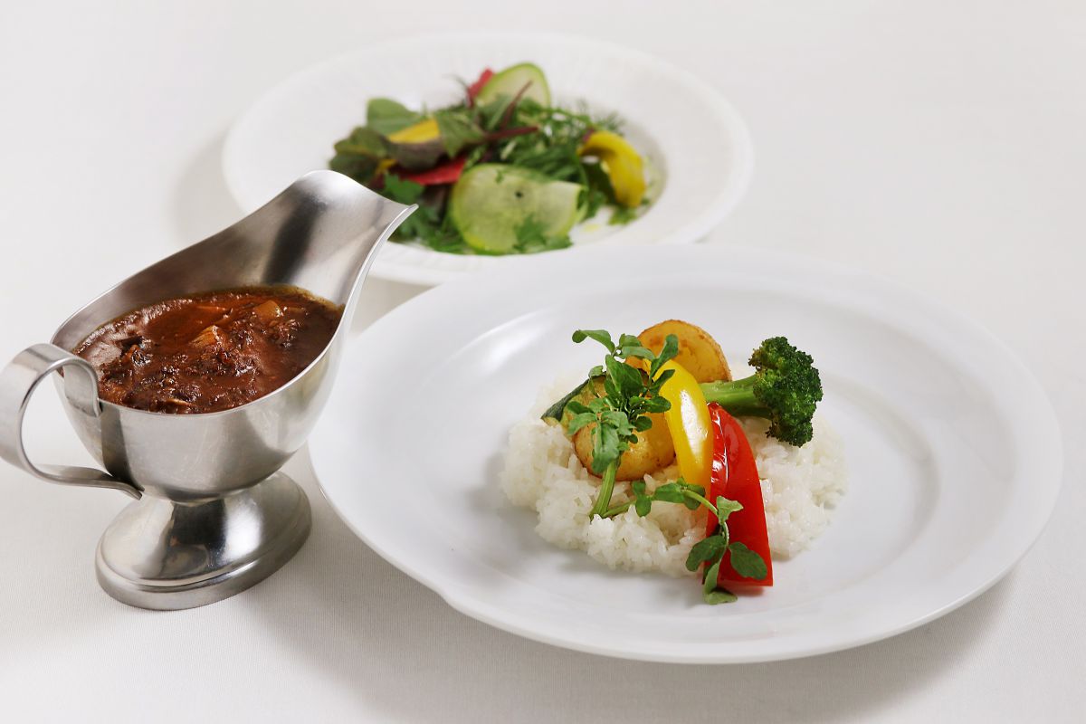 「じっくり煮込んだハヤシライス」サラダ付き1550円は、牛肉をじっくり煮込んでいて、酸味と甘みのバランスが絶妙。Café1894定番の人気メニューです。月曜日と展示替え期間は1210円になるので、お得な期間にぜひ。