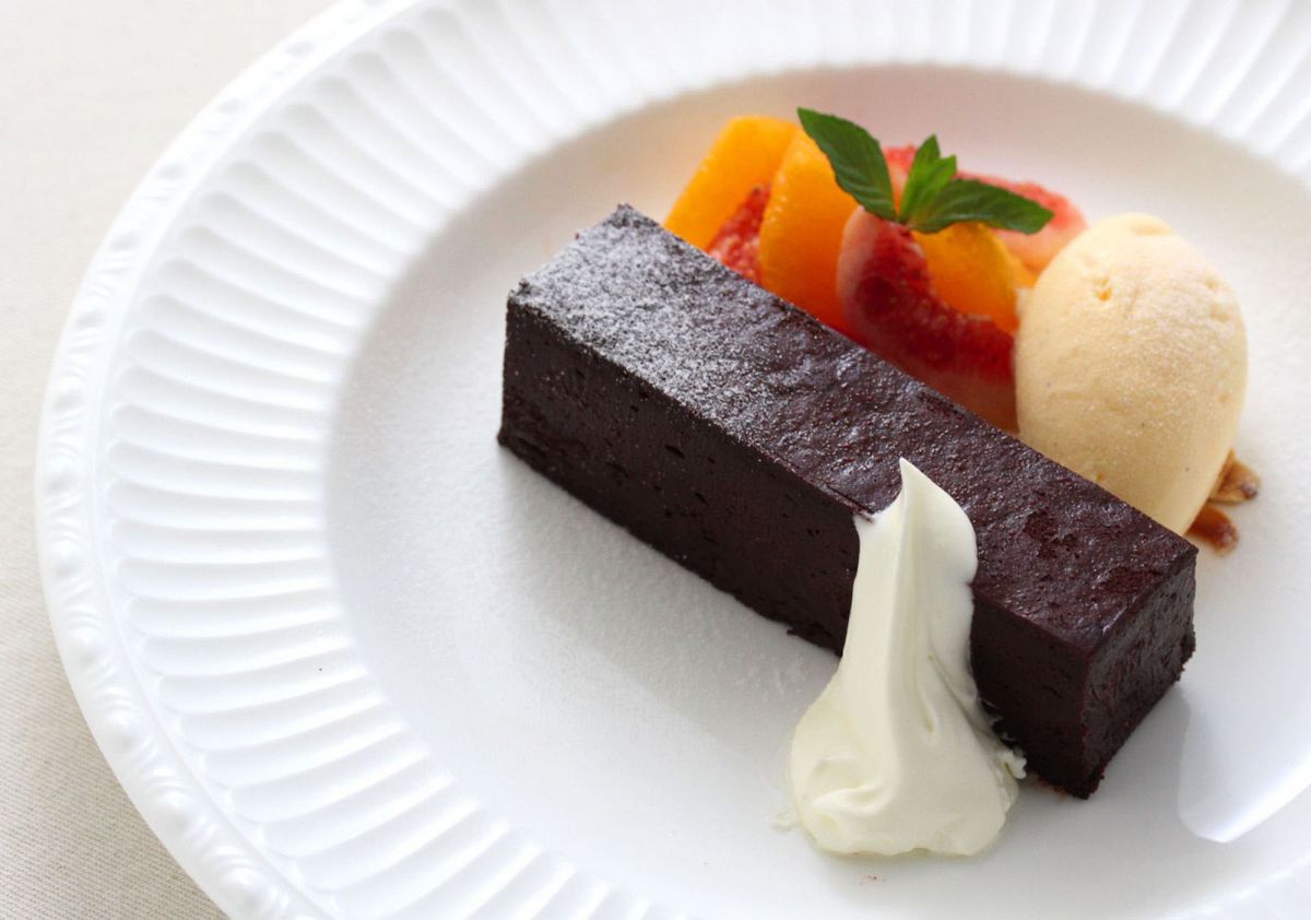 「濃厚なチョコレートのテリーヌ 季節のフルールを添えて」が復活!新作デザートも