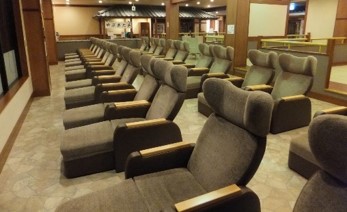 36台のリクライニングシートと3000冊の漫画が並ぶ「らくらくの間」は、外の景色を眺めながらゆっくり読書ができます。お休み処の中でも開放感があり、女性専用のシートもあって落ち着くスペース。
