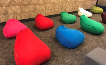 「ゆったりラウンジ」は、大きめのソファの並ぶ空間でテレビや読書が楽しめます。グループの待ち合わせにも便利です。