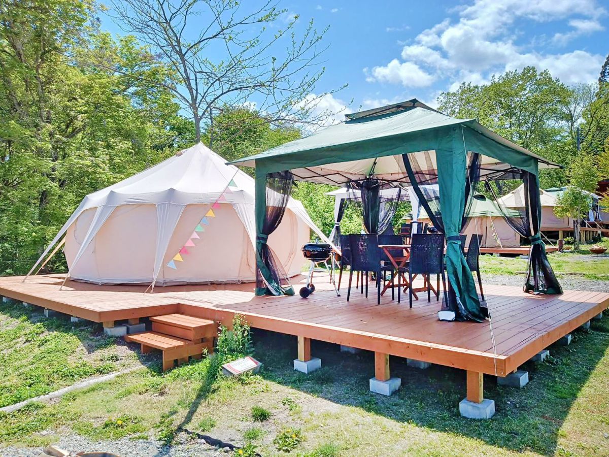 | 設備など | トイレ:あり/Lunaのサイト以外はテント内にトイレあり 温水シャワー:あり/Lunaのサイト以外はテント内にシャワールームあり 入浴施設:あり/併設するリゾート型温泉施設「クアリゾート湯舟沢」をチェックイン当日無料で利用できる。チェックイン前から利用可能 管理人の駐在:あり/24時間 |