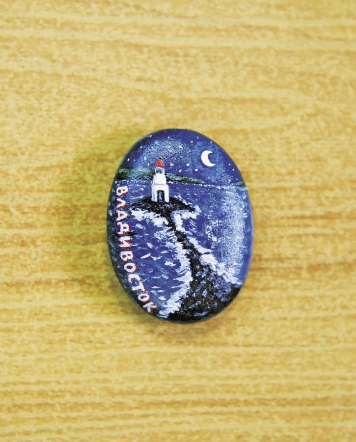 トカレフスキー灯台をモチーフにした、ペーパーウェイトは500P。アーティストが絵付けしています。