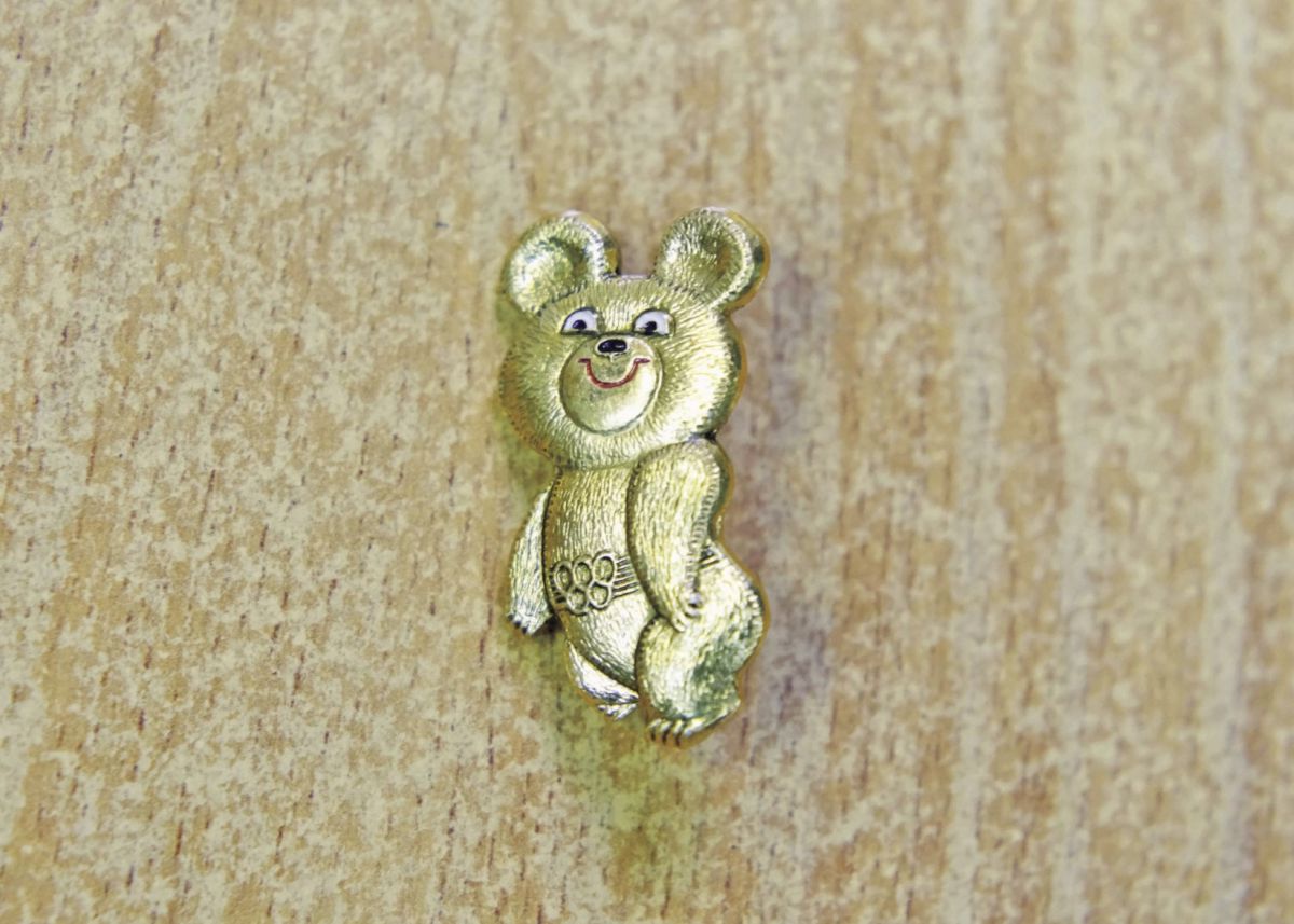 あやしげな目つきがクセになる、ミーシャのピンバッジ(300P)も見つけました。1980年のモスクワ五輪のマスコットです。