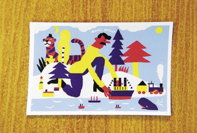 地元出身の名優、ユル・ブリンナーを模したおしゃれなデザインのポストカードは50P。