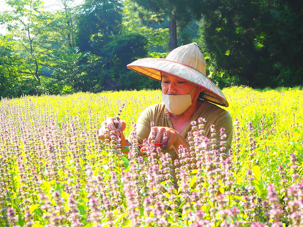 埼玉県出身で新潟県十日町市の松之山地域に移住し、ホーリーバジルの栽培・販売を行っている「まつのやま茶倉」の嶋村彰さん。無農薬・無化学肥料、そしてすべて手摘みという嶋村さんのホーリーバジル畑で、収穫体験をさせていただきました。