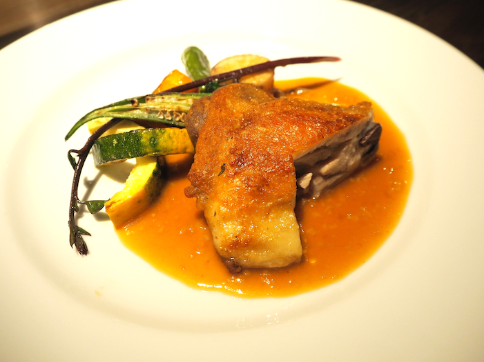 今日のメインは新潟県を代表するブランド鶏「越の鶏」のコンフィ。臭みがなくヘルシーなのが特徴の鶏肉です。パリパリの皮にナイフを入れるとじゅわっと肉汁があふれます。