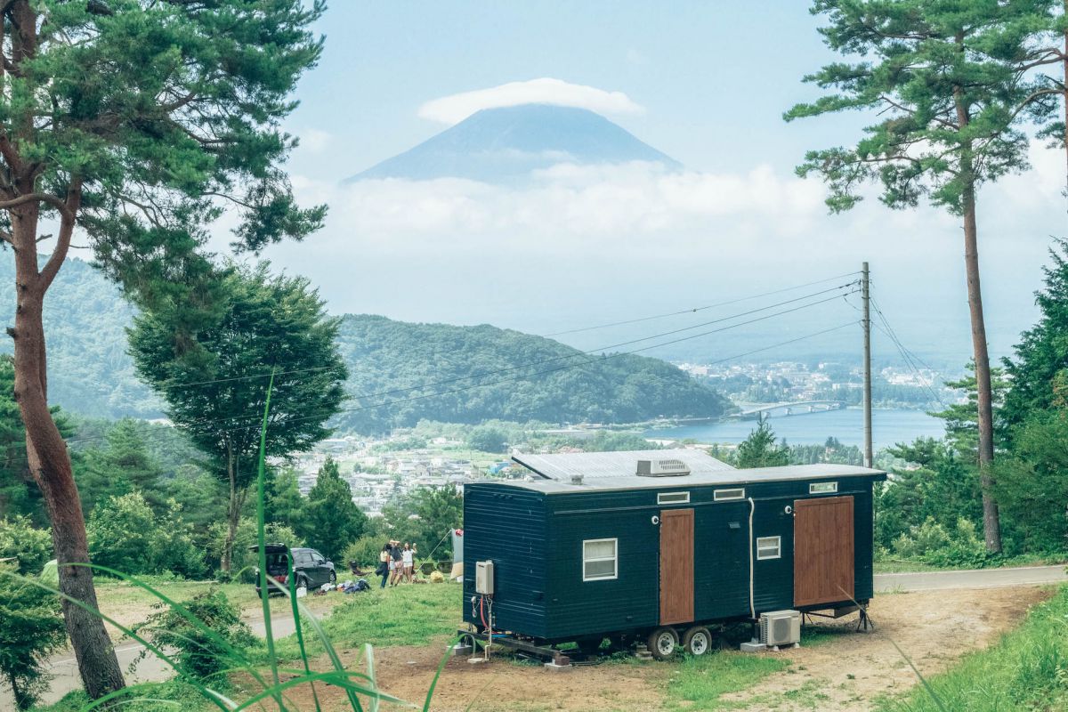 富士山麓、河口湖を望むキャンプ場。共用施設としてキッチンスペース、トイレ、シャワールームを完備。富士山と河口湖を一望するテントサイトをはじめ、トレーラーハウスやスモールハウスといった屋内宿泊施設もある。夏季の毎週日曜には富士山を目の前に朝ヨガを実施。自然の中でパワーチャージができる。