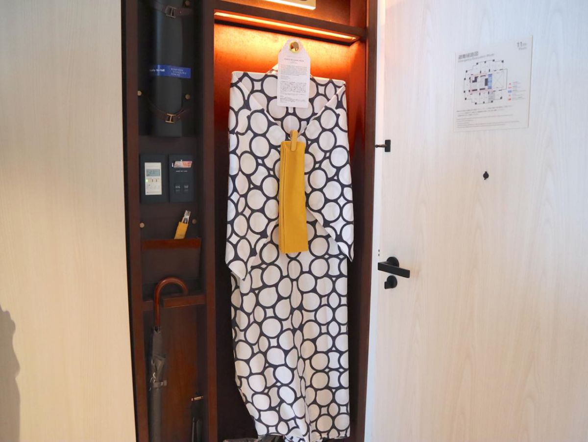 部屋の入口にあるクローゼットは、お弁当箱をモチーフにデザインされていて、ぎゅっとコンパクトに。浴衣がとてもかわいいですね。絶大な人気を誇っているヨガウェアブランド「Lululemon(ルルレモン)」のヨガマットも備え付けてあるので、いつでも部屋の中でヨガを楽しむことができますよ。