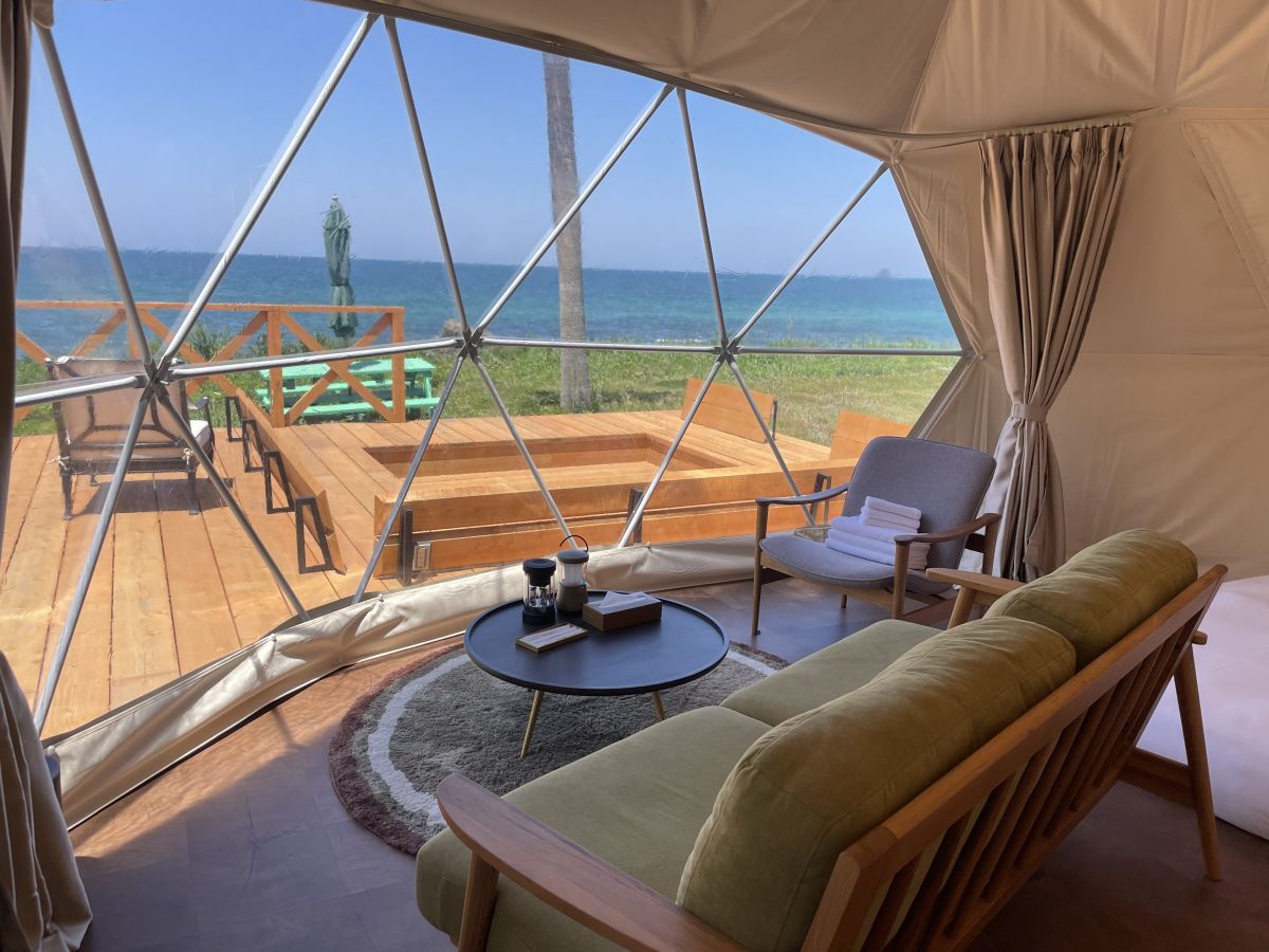福岡の中心地から近く、自然豊かな糸島にある統合型リゾート施設。高級感あふれるドームテントでの「グランピング」が楽しめる。美しいサンライズ&サンセットを眺めたり、海釣りや海水浴をしたりと、身体も心もリラックスできる。海が目の前に広がるバーベキューエリアでは、食材を持ち込んで日帰りバーベキューが楽しめる。2024年夏にリニューアル予定しており、週末にはDJなどのイベントも開催するほか、子ども連れも楽しめるスペースを増設予定。併設のカフェも地元のカフェを誘致して7月にリニューアルオープン。詳細はホームページで確認を。