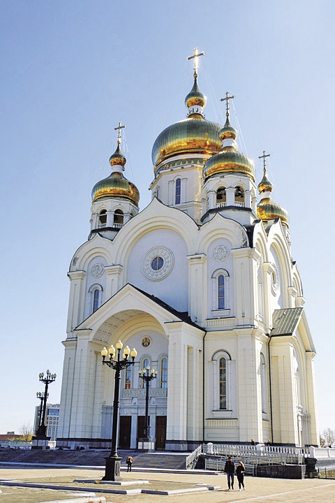 街の南にあるスパソ・プレオブラジェンスキー大聖堂は、高さが70mもあり、極東ロシアで最大級!金色のタマネギ頭が遠くからも目印になります。