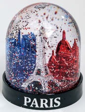 定番みやげのスノードームは€7.99。パリのシンボルがフランス国旗色になっています。