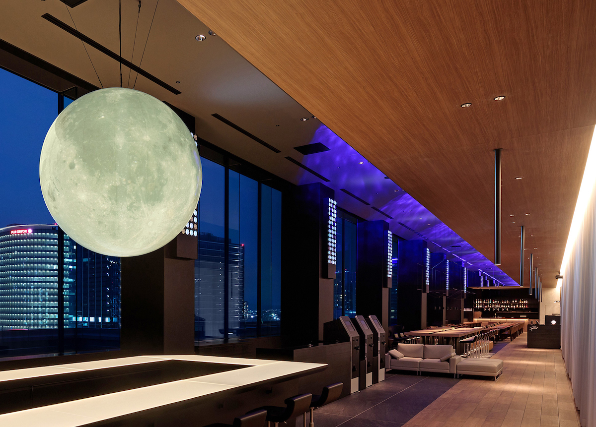 2020年6月にオープンした、横浜東急 REI ホテル。ロビーに飾られた直径 1.5mの巨大な月のオブジェは、NASA の月面画像データを基に制作されました。月の引力のように人と人、さまざまなシーンを結びつけるというホテルのコンセプトのシンボルとして、出迎えてくれます。
