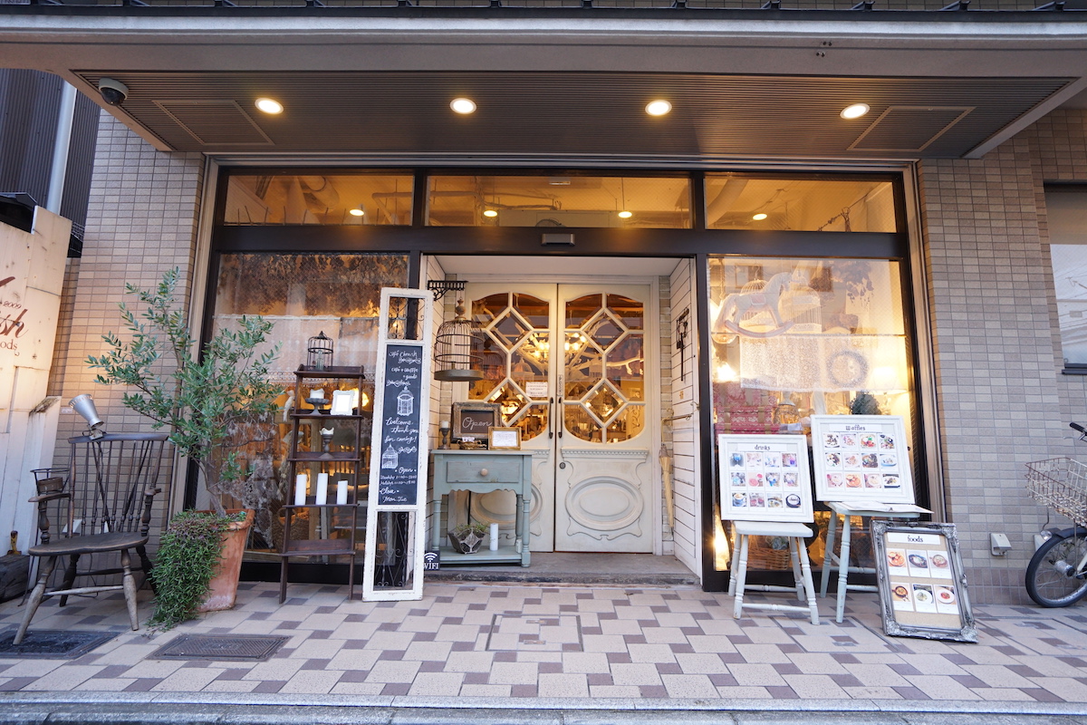 京都市営地下鉄東西線「烏丸御池駅」と「京都市役所前駅」のちょうど間にある「cafe Cherish」。入り口からすでにヨーロピアンな雰囲気で、ワクワク感が高まります。