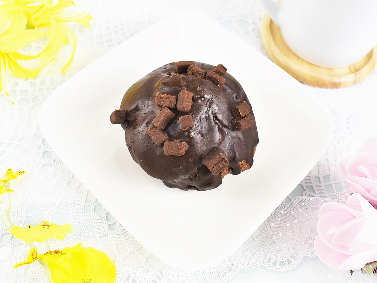 生地にチョコペーストを練りこんだ「チョコ2シュー」。公式サイトによると、中には生チョコで作った“ガナッシュクリーム”が注入されているそうです。さらに生地の表面には、ダイス状の“生チョコ”がたっぷり。ふんだんにチョコレートが使用されているため、カロリーは377kcalと少々お高めです…。とはいえ、仕事で疲れた日のご褒美にはちょうど良いかも。