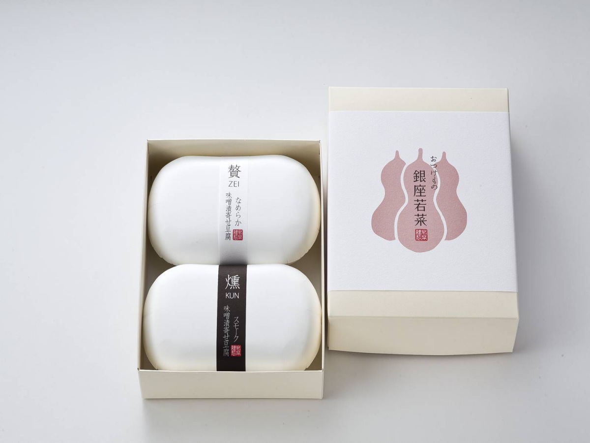 年配の方や目上の方への手土産は、きちんと感のあるものを贈りたい。そんなときにおすすめなのが銀座に本店を構える漬物専門店「銀座若菜(ぎんざわかな)」の1日100個限定の「味噌漬寄せ豆腐」。甘くないので、お酒のおつまみにもぴったりですよ。