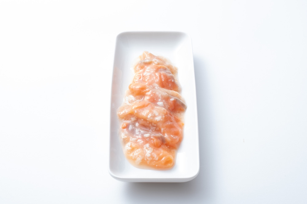 1番人気の「ご飯に 塩麹漬けサーモン」は、塩麹で醸されたサーモンのとろりとした味わいがクセになる逸品。塩麹とサーモンだけで作られた、添加物不使用の発酵食品です。