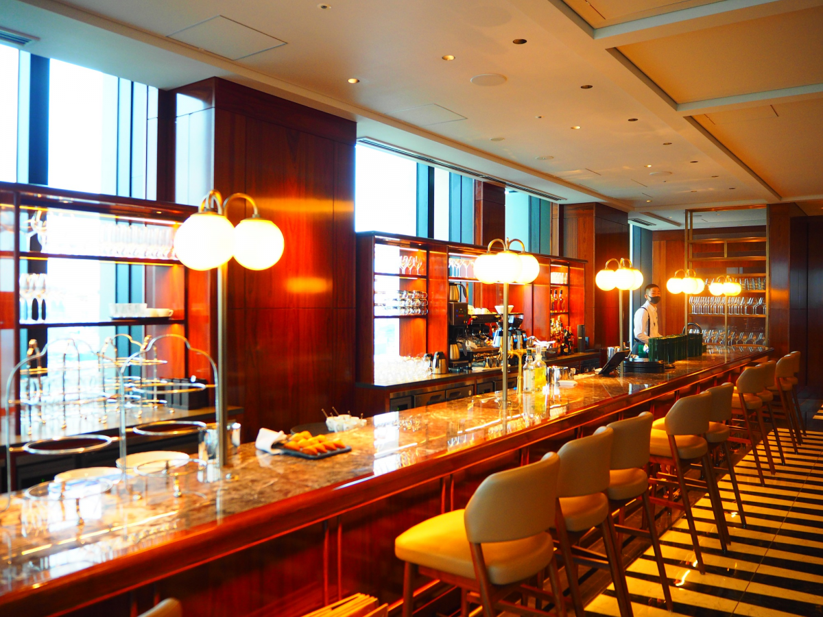 最上階から青山を見下ろすメインダイニング「TRATTORIA ANDREA ROSSI」は、70年代の東京、原宿で文化にもなった「クレープ」がスペシャリティのアフタヌーンティーも愉しめます。クラシックなライトが照らすバーカウンターも素敵。クラシックなイタリアンのディナーは、2020年10月23日にオープンの予定。