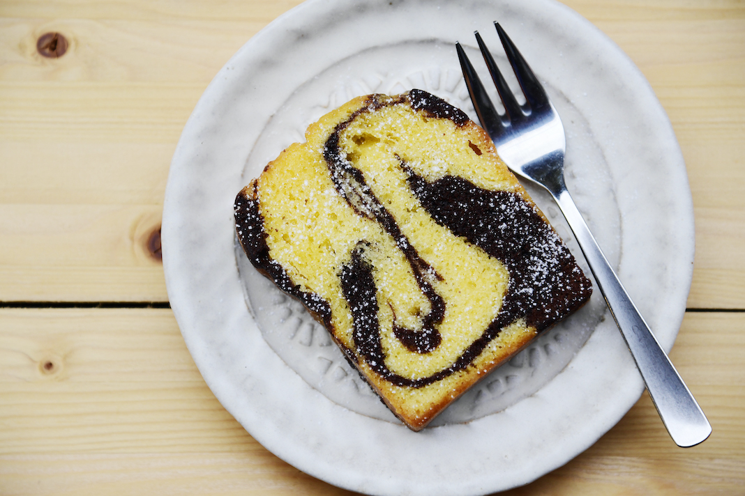 カカオ生地のビターなほろ苦さを、卵とミルクの味わいたっぷりのプレーン生地が優しく包み込みます。ふんわり、しっとりの優しい食感で、口の中にいれるとほろっとほどけていく感じがたまりません…!