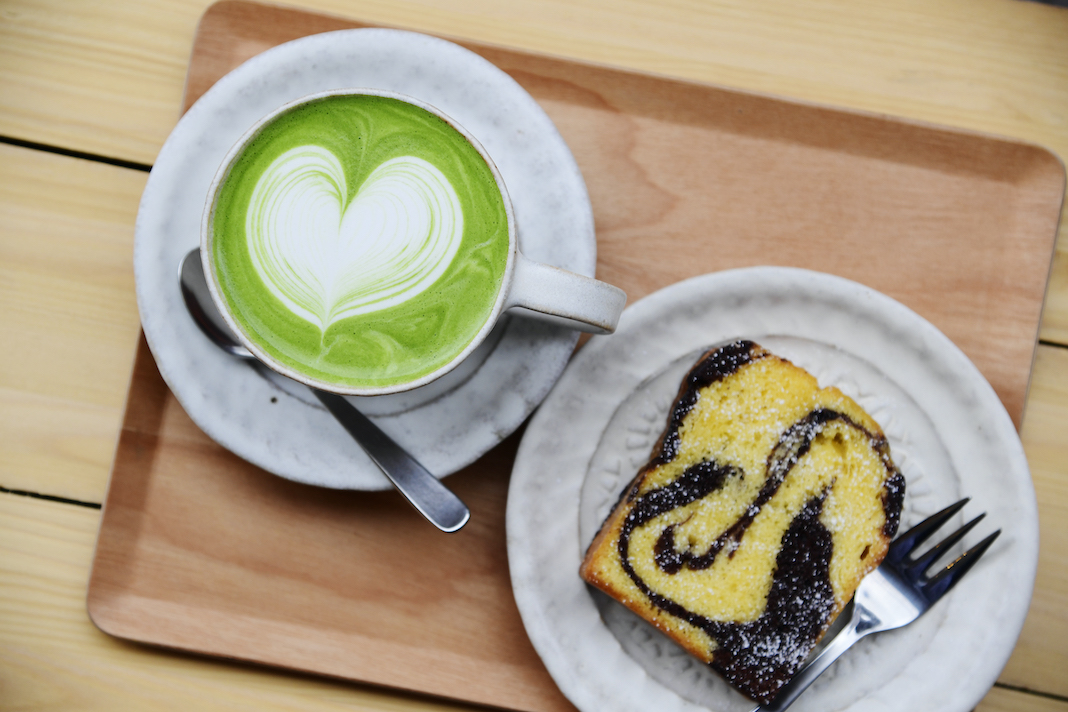 パウンドケーキの甘さと、抹茶ラテのほろ苦さとが絶妙にマッチする組み合わせでした。