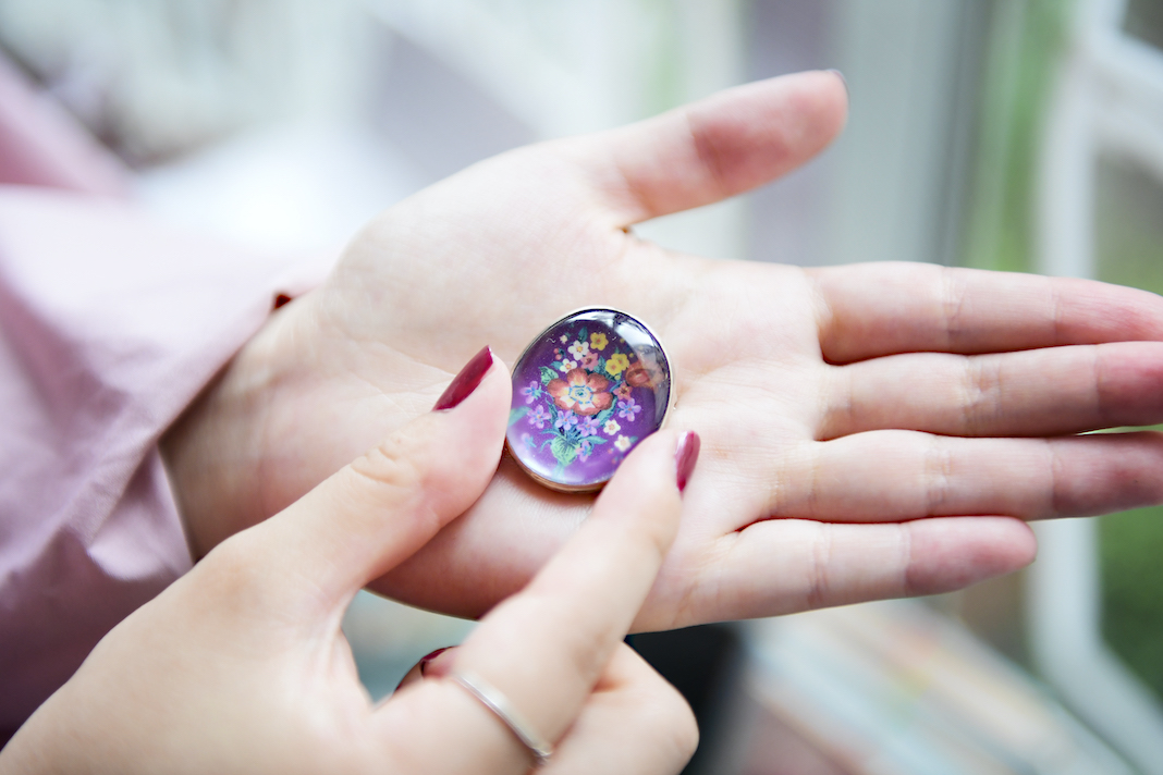 こちらのブローチは、フランス人女性イラストレーター、「Nathalie Lété(ナタリー・レテ)」のイラストが封じ込められた作品(25080円)。水晶で作られており、透明感あふれる美しい紫色が目を引きます。
