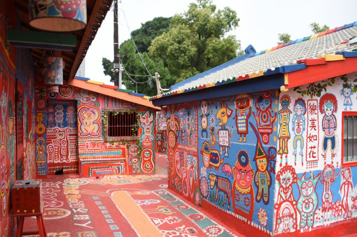 壁一面に描かれたアートで有名な、台中の彩虹眷村。鮮やかな色合いやユニークな絵柄、そしてそれが村の壁という壁、そして地面にまで描かれているのが珍しく、台中観光の名物スポットになっています。