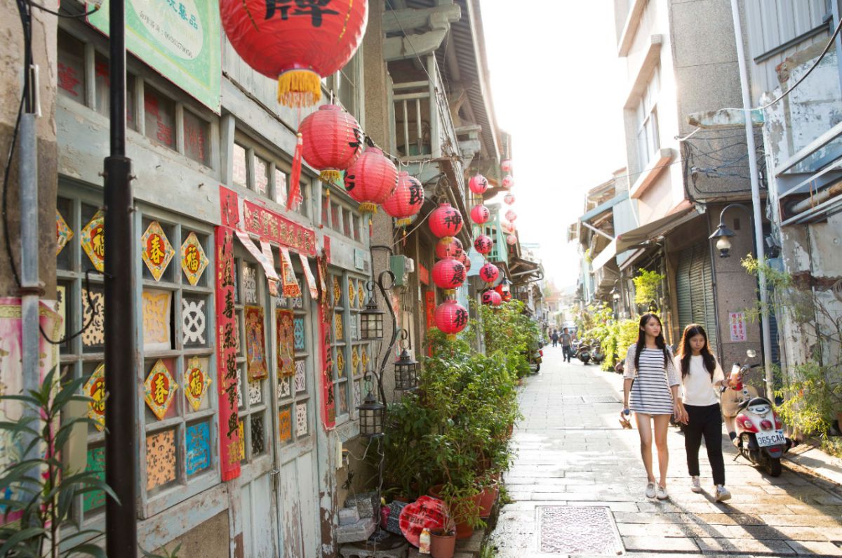 見どころスポットの一つ、神農街は清代の建物が残る路地。医薬と農業の神様・薬王大帝(神農氏)を祭る薬王廟があるほか、リノベスポットも増えてきています。赤い提灯や装飾が雰囲気を盛り上げる路地で、のどかな雰囲気に浸ってみませんか。