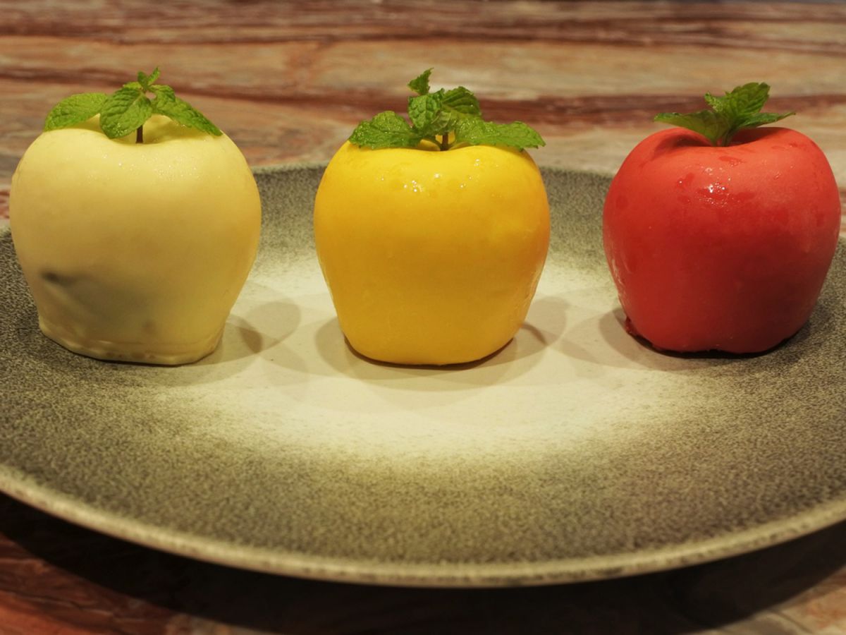 一見すると、もいだばかりの新鮮な果物のようですが、実はこれ、果物を模したホワイトチョコレートをベースにしたスイーツなんです!