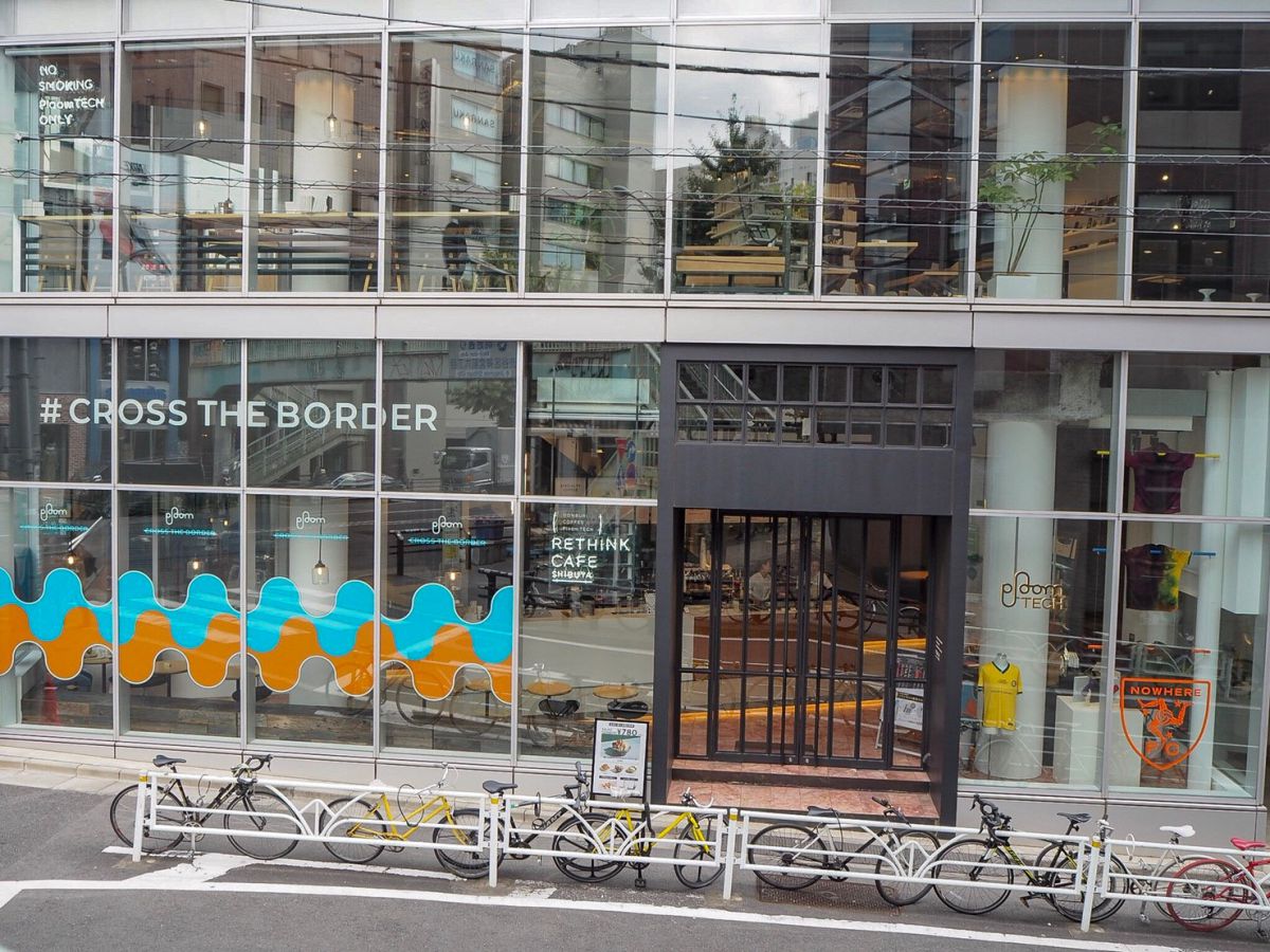 渋谷駅13番出口からキャットストリート方面に5分ほど歩いて着くのが「RETHINK CAFE SHIBUYA」。ガラス張りで開放感のあるカフェです。