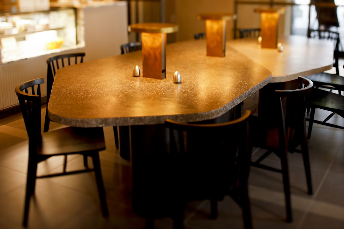 デザイン会社が母体とあって内装は北欧モダンで洗練された空間。窓側のソファ席は明るい光が差し込む人気席です。