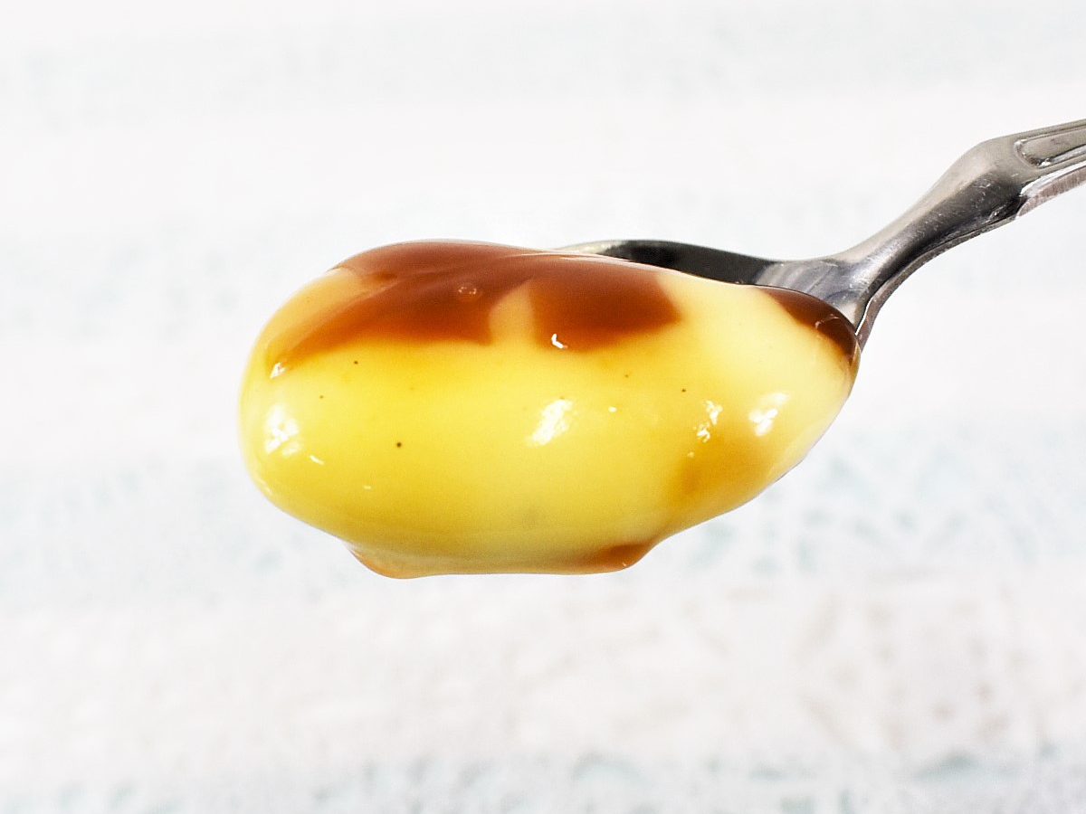 まず上の層だけいただくと、名前の通り“とろ~ん”とした食感が。とろけるようなくちどけは、まさに“新食感”です。実はこちらプリンではなく、“アングレーズソース”というデザートソースのようです。下のプリンと一緒にいただいたところ、プリンとソースがよく絡んでさらにおいしく感じられました。