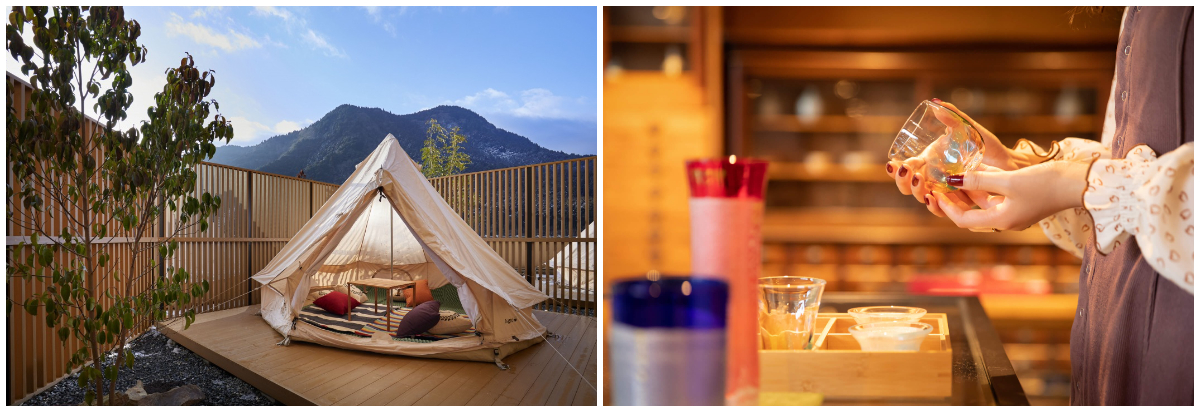 宿泊するのは九州女子に人気の宿「ONCRI(オンクリ)」です。老舗旅館をリノベーションした静かなたたずまいが古湯の自然に溶け込んで、都会を離れたことを実感させてくれます。