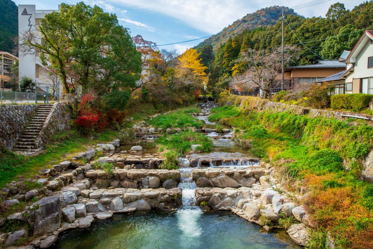 ヘルシーなシシリアンライスでお腹を満たしたら、早速今回の佐賀ロングステイの拠点である古湯温泉へ向かいます。ここは山々の深い緑と渓谷が印象的な、小さな温泉地です。車に乗り、佐賀市街から約30分で到着!